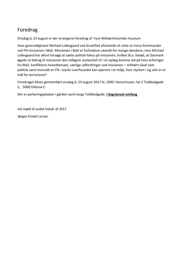 Foredrag 23. august 2017 Dato/klokkeslæt Date(s) - 23/08/201719:00 - 22:00 Lokation Seniorhuset hal 2 Kategori